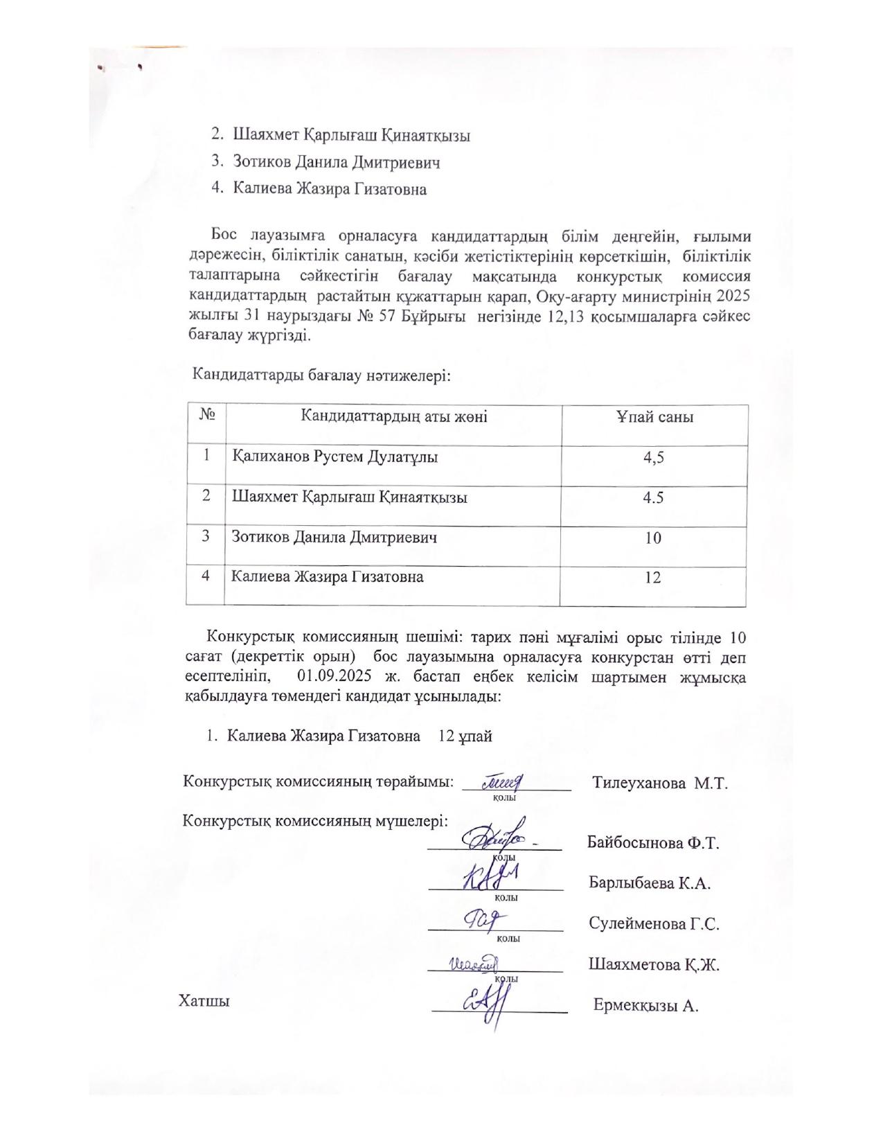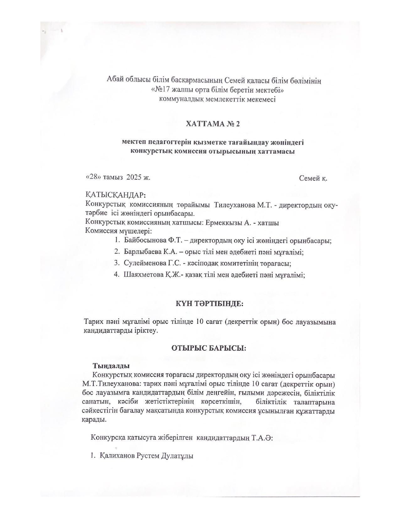 Результаты конкурса на должность учителя истории » КГУ СОШ № 17