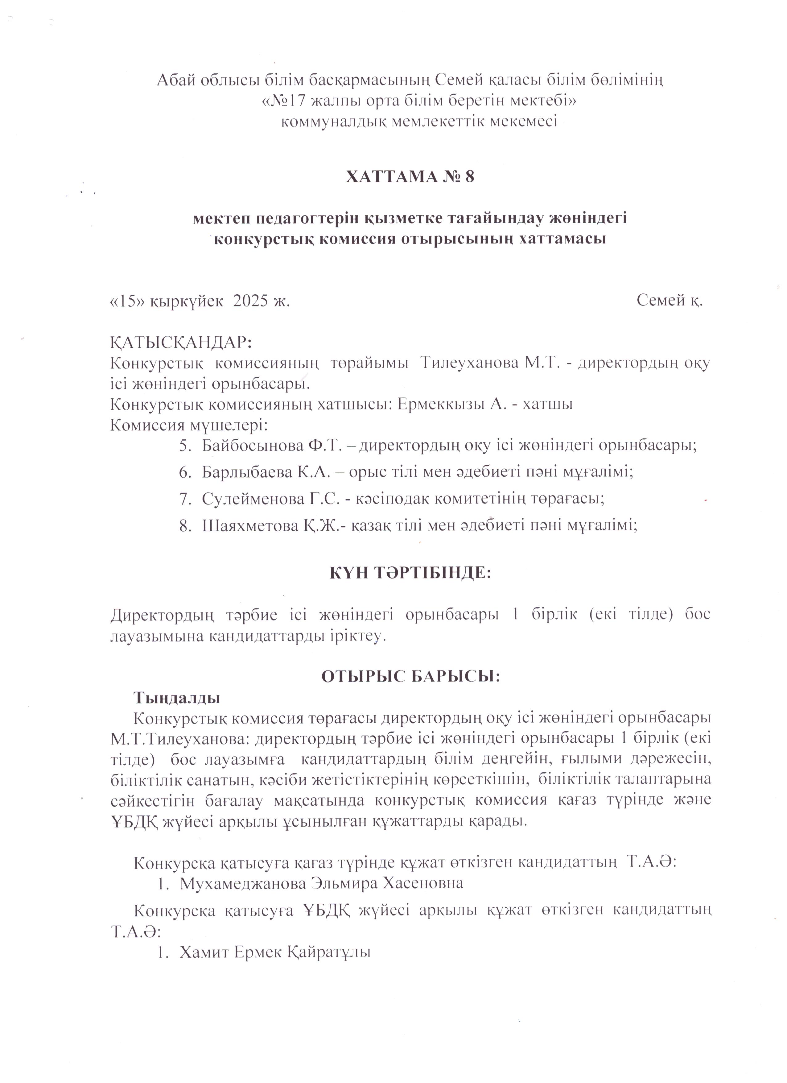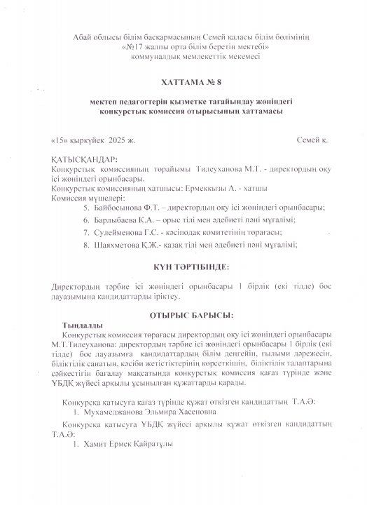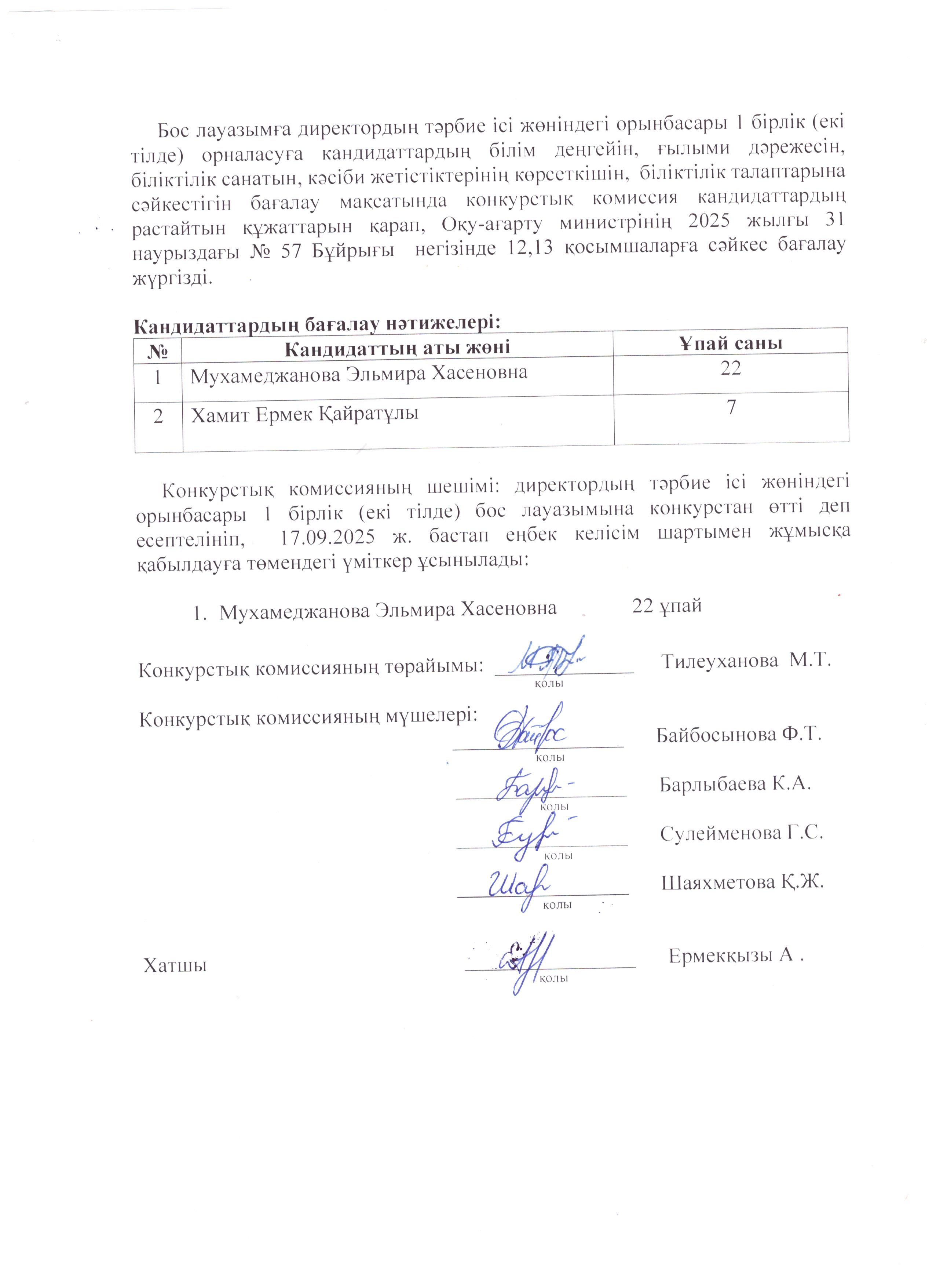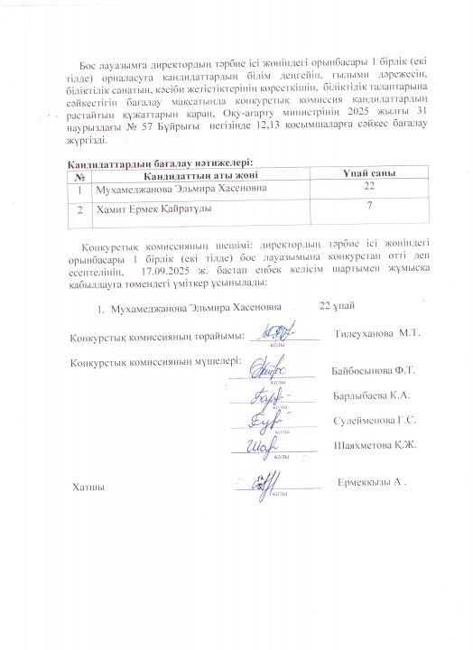 15 сентябрь 2025 0 1 2 3 4 5 Результаты конкурса на должность заместителя директора по воспитательной работе