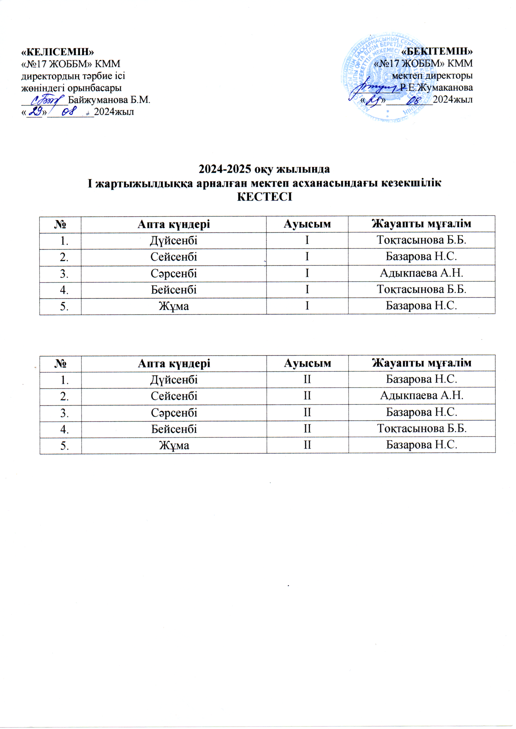 Мектеп асханасындағы кезекшілік кестесі » КГУ СОШ № 17