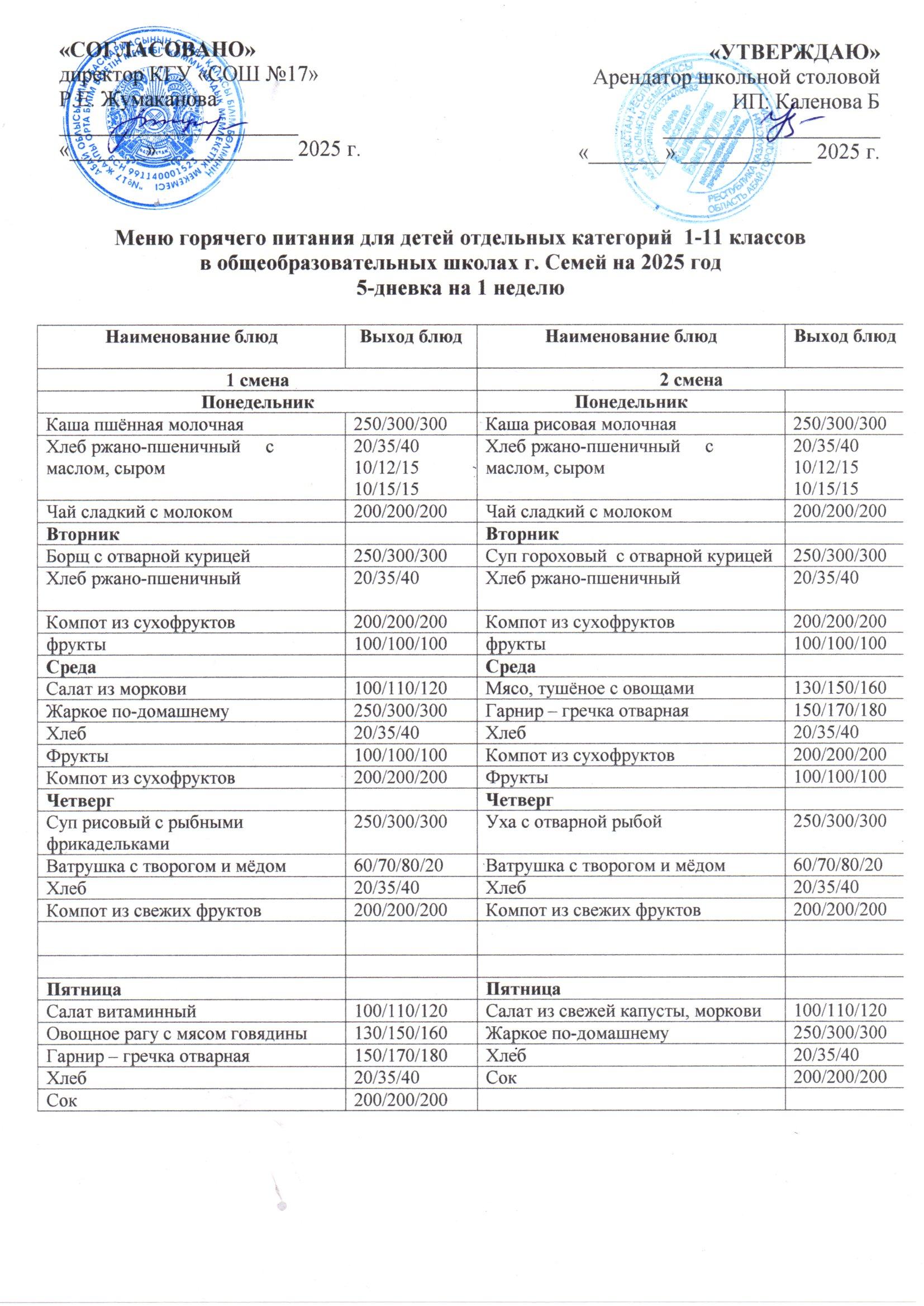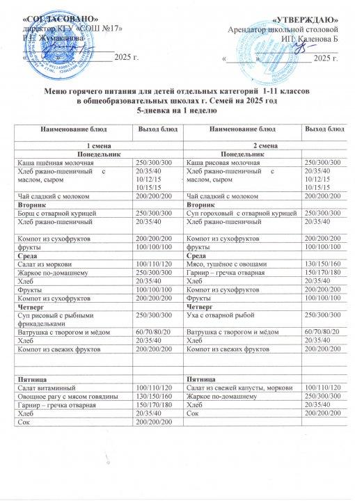 29 сентябрь 2025 0 1 2 3 4 5 Меню горячего питания для детей из малообеспеченных семей 1-11 классов в общеобразовательных школах г.Семей на 2025 год 5-дневка на 1 неделю
