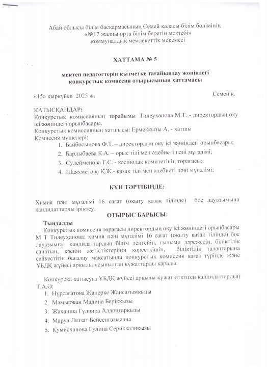 Результаты конкурса на должность учителя химии » КГУ СОШ № 17