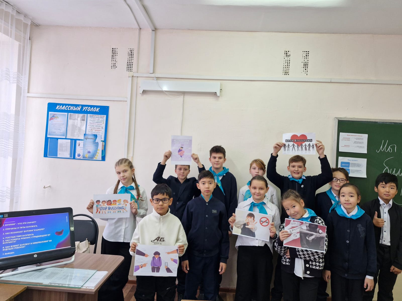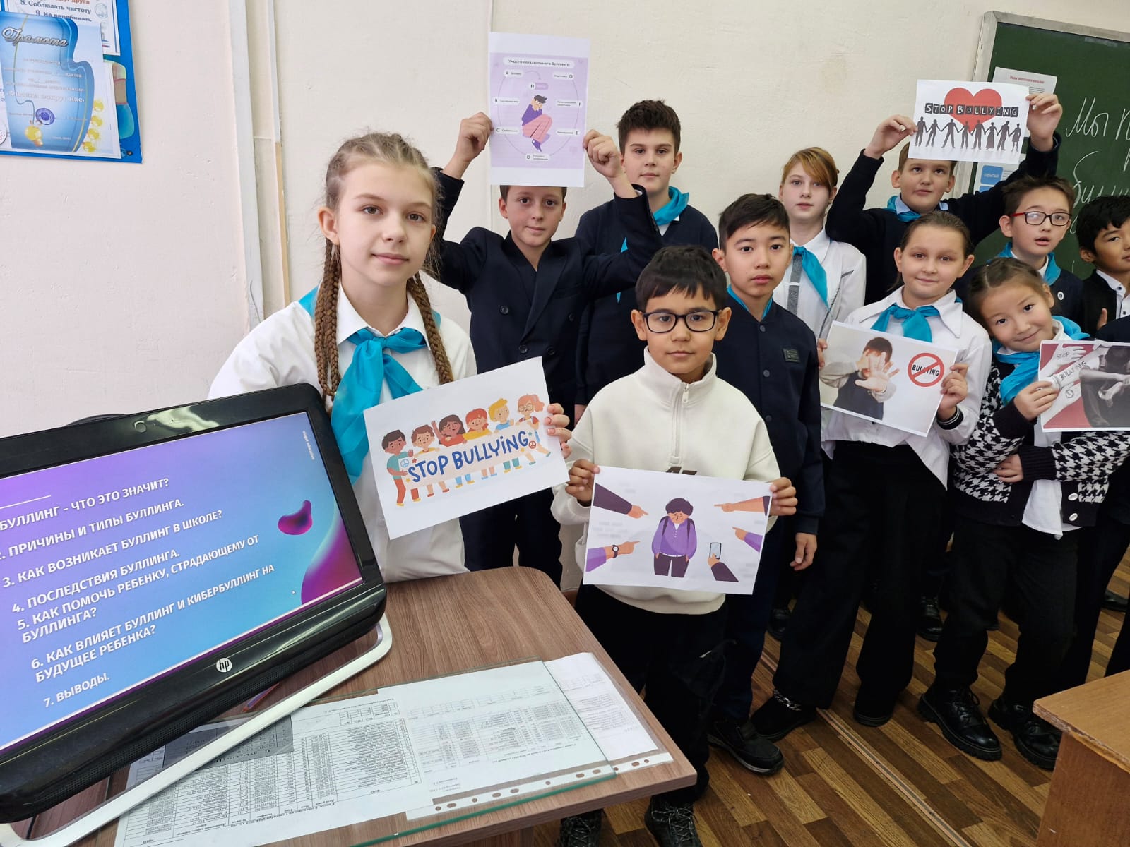 Сынып сағатында: ✅ Буллинг және кибербуллинг ұғымдары талқыланды; ✅ Достық пен өзара сыйластықтың маңызы айтылды; ✅ Оқушылар өз ойларын ашық жеткізіп, ситуациялық сұрақтарға жауап іздеді.