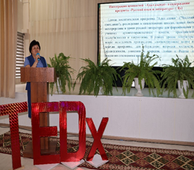 В рамках семинара учитель русского языка и литературы нашей школы Барлыбаева К.А. представила доклад на тему: «Интеграция ценностей “Адал Азамат” в содержание предмета “Русский язык и литература”», в котором поделилась практическими подходами к формированию ценностных ориентиров у учащихся.