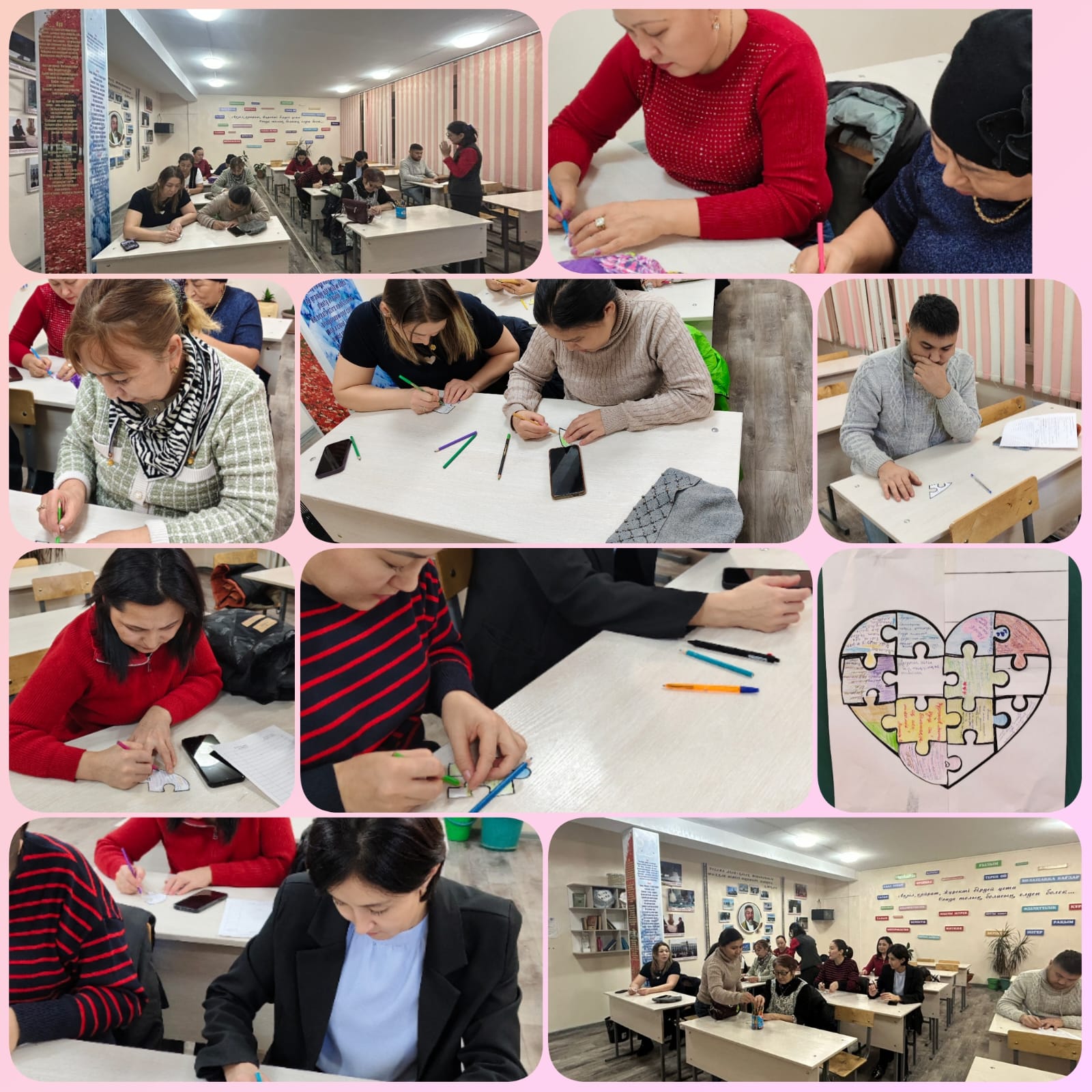 Тренинг соңында құрастырылған үлкен жүрек көрнекі жерге ілініп, ата-аналар қауымдастығының бірлігі мен өзара сыйластығын айшықтайтын ерекше экспозицияға айналды.