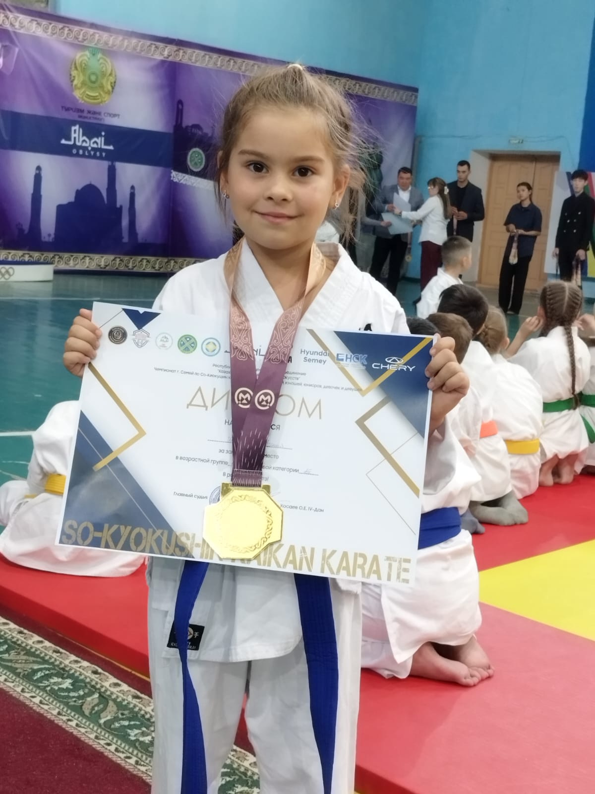 29 сентябрь 2025 0 1 2 3 4 5 Шестакова Евгения воспитаница предшкольного класса 0"Б" приняла участие в городских соревнованях по So- kyokushin kaikan karate