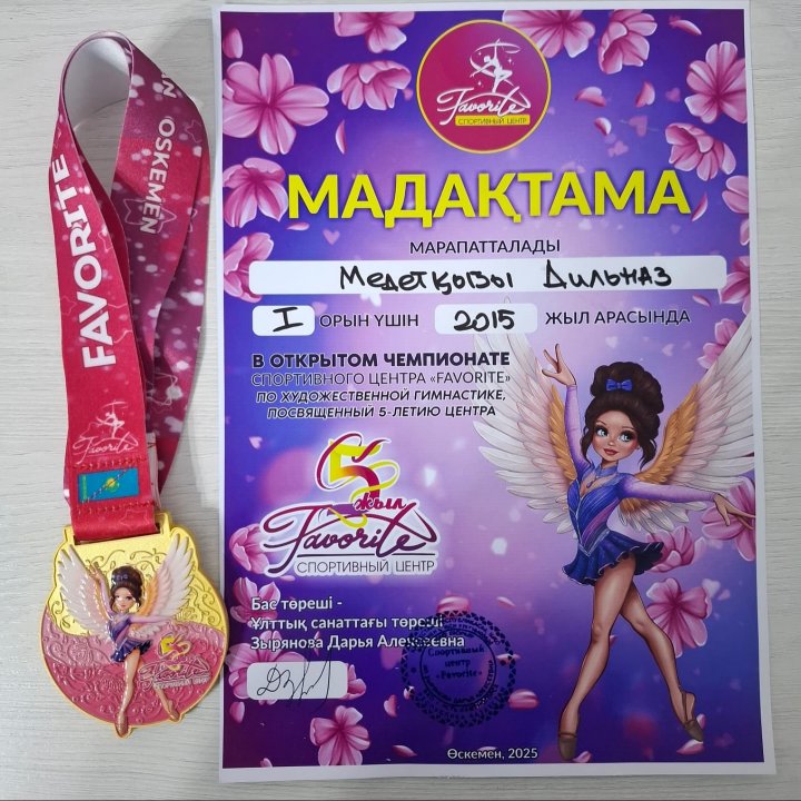 Өскемен қаласында көркем гимнастикадан өткен “Favorite” спорт Орталығының 5- жылдығына арналған ашық чемпионатында 4”б”сынып оқушысы Медетқызы Дильназ 2015жылдар арасында 1орынды иеленді.
