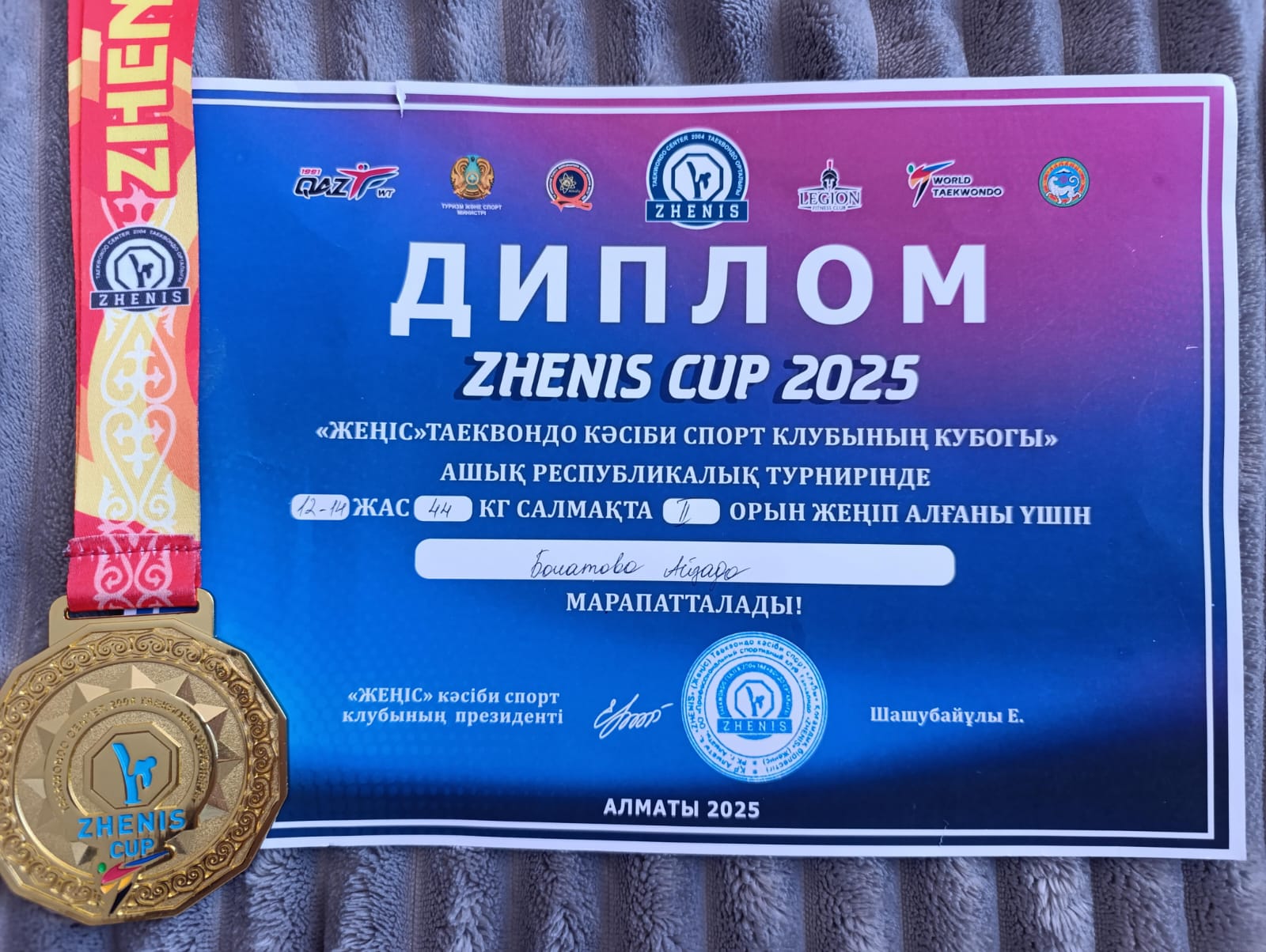 Мектебіміздің 6 «Б» сынып оқушысы Болатова Айзада Алматы қаласында өткен кәсіби таеквондодан республикалық турнирде жүлделі ІІ орынды иеленді.